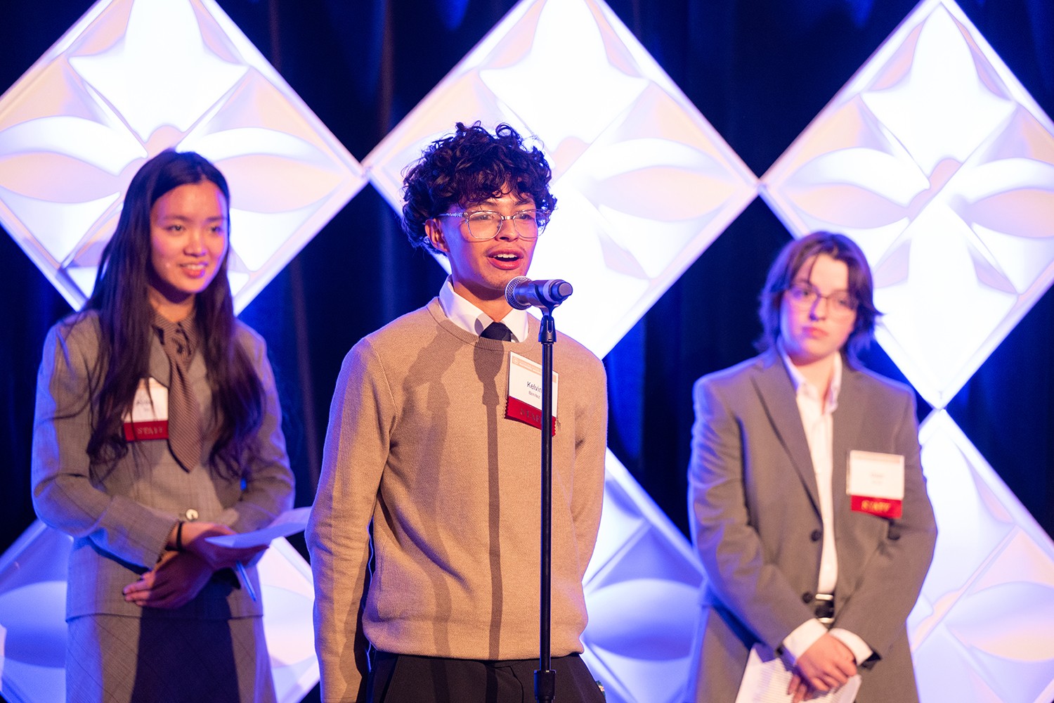 Photo: Our rockstar Green Ambassadors delivering powerful speeches about their experiences at Cathleen Stone Island.